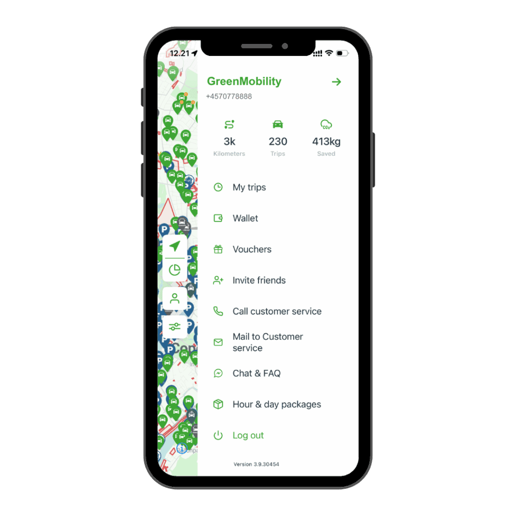 Vær sikret en ledig elbil når du skal afsted ved at få den leveret til dig. Vælg levering til din hjemmeadresse, når du skal til lufthavnen, eller til Københavns Lufthavn når du skal hjem fra rejsen. Du bestiller nemt en elbil i appen under “Bestil en bil”.