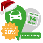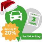 Juletilbuddet på døgnpakker er tilgængeligt i København t.o.m. 4. januar 2026. Pakkerne er gyldige i 30 dage fra købet. Priserne gælder for Zoe og Megane. Tillæg for Polestar 2, ID. Buzz og varevogne ses under pakkerne. Tilbuddet kan ikke kombineres med GreenSaver. Aktiver pakken under “Mine pakker” i appen før turstart. Kører du længere end de inkluderede døgn eller km, kører du for 2,25 kr./min. og 2,25 kr./km.
