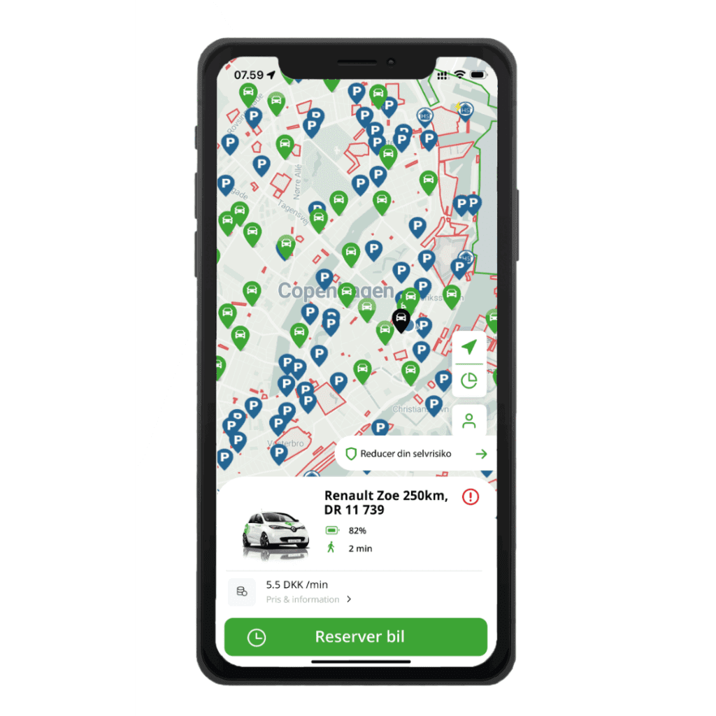 Appen viser dig den nærmeste ledige bil. Du kan nemt reservere den.