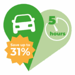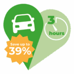 In the GreenMobility app, you can often find a car with a reduced minute price. These have an icon with an orange percent sign in the app. If you have Top-up kroner in your account, you can drive down to only DKK 1,57/min.