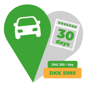 You don’t have to return the car to the starting point. Simply park it in our main zone or satellite zones like Billund Airport, Aarhus Airport, Tilst, Mårslet, Stavtrup, and more.